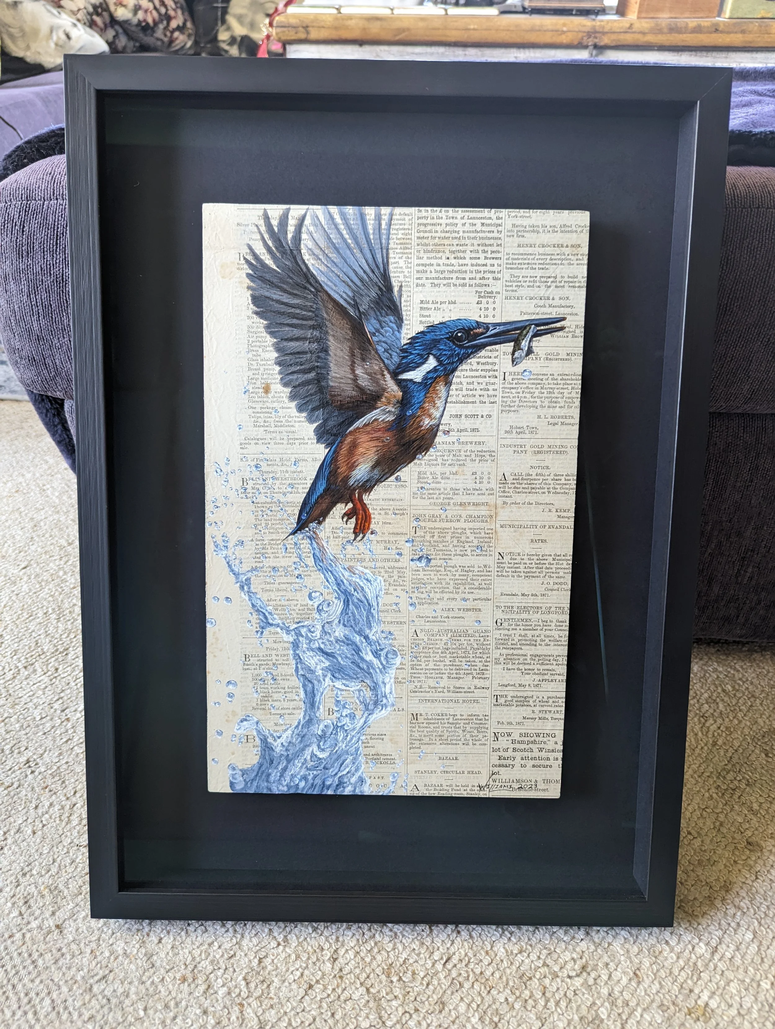Azure Kingfisher on vintage (1871) sheet from ‘The Cornwall Chronicle’